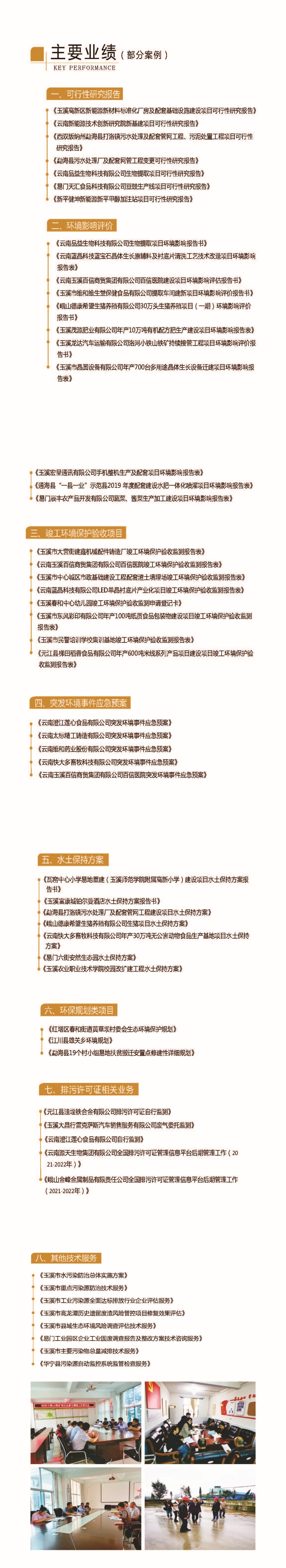 公司可承接農(nóng)村環(huán)境綜合治理、環(huán)境規(guī)劃、環(huán)境工程設(shè)計(jì)、環(huán)境影響評(píng)價(jià)、突發(fā)環(huán)境事件應(yīng)急預(yù)案、水土保持報(bào)告等方案的編制;排污許可證填報(bào)及管理;污染減排技術(shù)服務(wù)、環(huán)保管家等各項(xiàng)業(yè)務(wù)。項(xiàng)目覆蓋范圍廣,公司成立至今已承接過(guò)數(shù)百項(xiàng)環(huán)保技術(shù)咨詢服務(wù)項(xiàng)目,咨詢經(jīng)驗(yàn)豐富,環(huán)保技術(shù)人才團(tuán)隊(duì)實(shí)力強(qiáng)大。