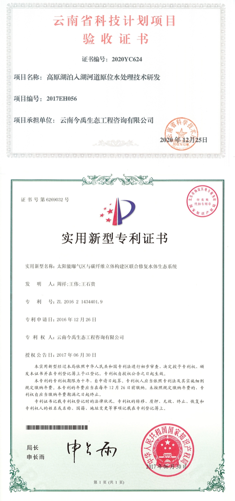 公司先后認(rèn)定為“高新技術(shù)企業(yè)”、“國家科技型中小企業(yè)”、“云南省科技型中小企業(yè)”、“云南省創(chuàng)新型中小企業(yè)”、“云南省專精特新中小企業(yè)”、“昆明市科技創(chuàng)新型試點企業(yè)”、“昆明市重點科技服務(wù)機構(gòu)”和“昆明市企業(yè)技術(shù)中心”,通過ISO9001質(zhì)量管理體系認(rèn)證,是云南省環(huán)保產(chǎn)業(yè)協(xié)會理事單位,“云南省水土保持學(xué)會生態(tài)修復(fù)和城市水土保持生態(tài)建設(shè)專委會”掛靠單位。