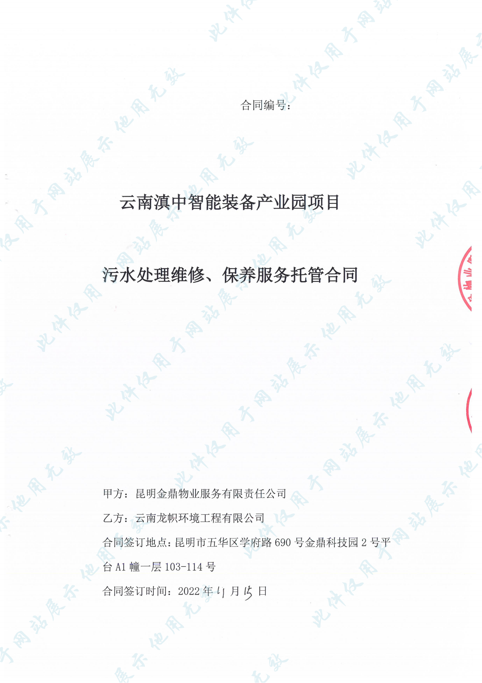 2. 云南滇中智能裝備產業(yè)園項目污水處理維修、保養(yǎng)服務托管